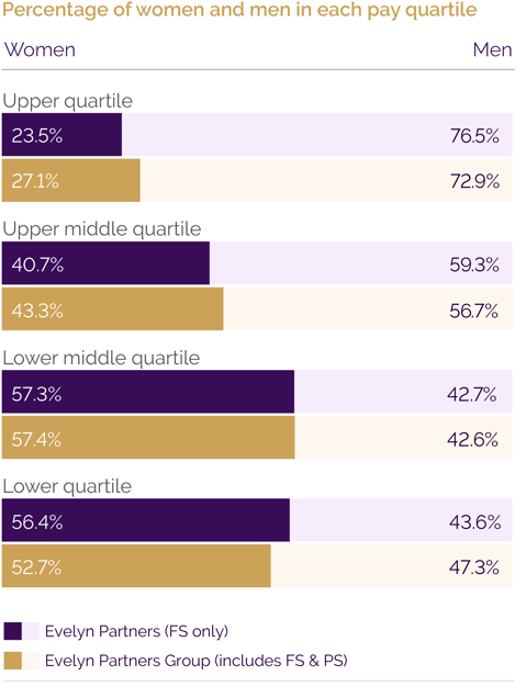 We have been able to work out what the Evelyn Partners (FS only) percentage of females in our upper pay quartile results would have been in April 2024 which is 23.5% (approx.).