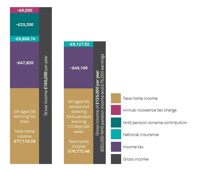 Illustration: How a GP can half their hours and end up only £338 per year worse off
